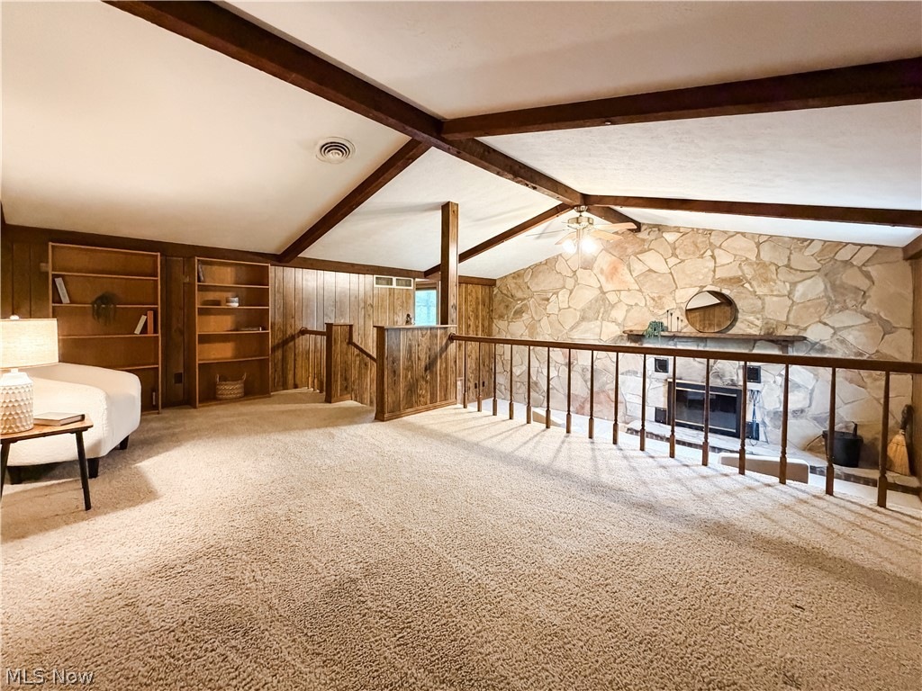 Just off the kitchen, you’ll find a cozy den complete with a wood-burning fireplace and an upper-level nook perfect for a home office or reading retreat.