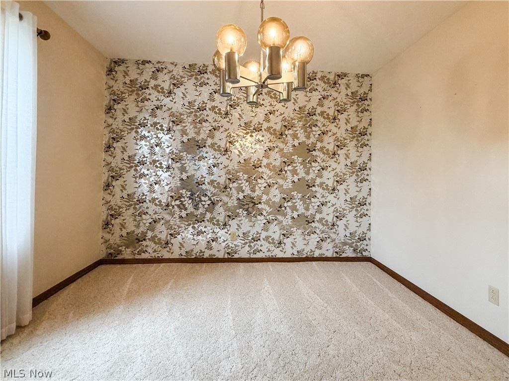 On the opposite side of the kitchen, a formal dining room with chandelier provides space for special occasions. Nearby, the main-floor laundry room includes a Speed Queen washer, electric dryer, and large wash basin.