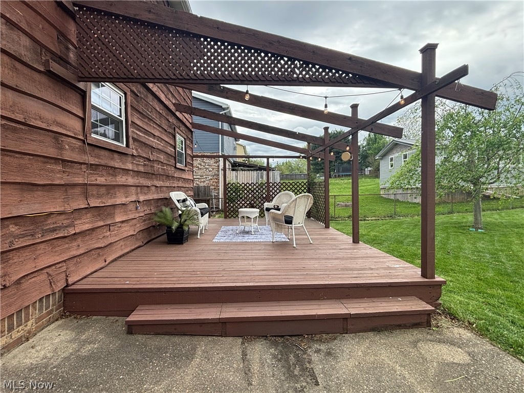 Sliding Pella doors lead to two back decks overlooking a lush yard—ideal for morning coffee or evening relaxation.